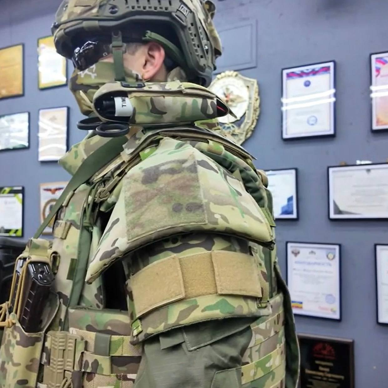 Затылочная часть требует отдельного внимания. Под шлемом используется специальная затылочная защита от бронекомплекса Воевода, которая закрывает уязвимый затылок при движении и смене позиций.